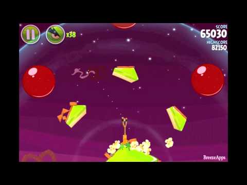 This walkthrough tutorial shows you one way to get 3 stars in Angry Birds Space Utopia 4-4. Click Here for the full list of Angry Birds Space walkthroughs.